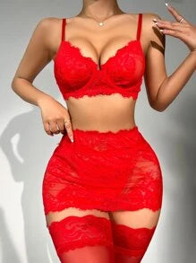 Set de lencería con encaje floral con aro con liga con 1 par medias